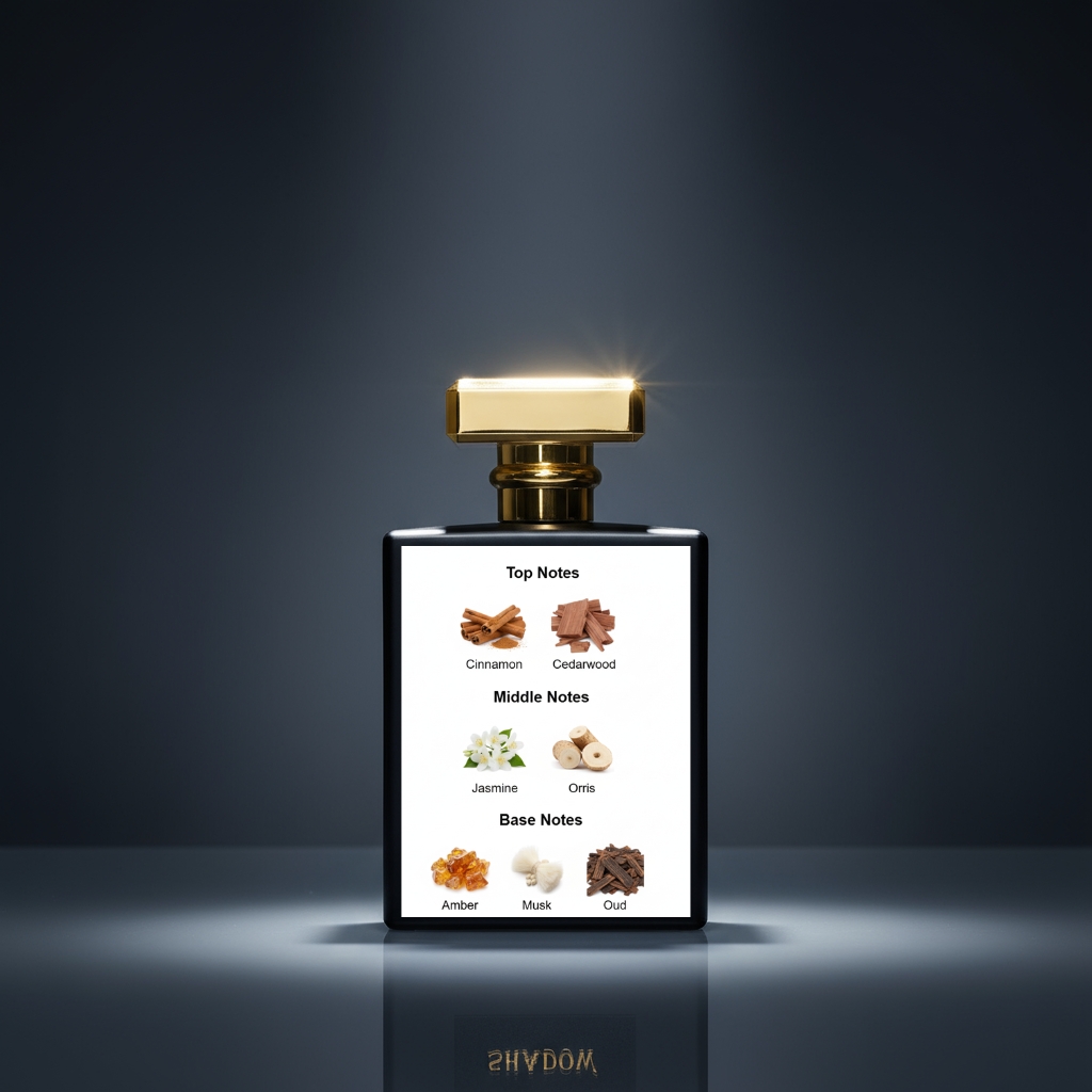 The true soul of Shadow reveals itself in its foundation: a magnetic, long-lasting accord of Amber’s golden warmth, Musk’s clean sensuality, and the profound depth of Oud. The Oud dominates the dry-down with its smoky, spiritual woodiness—a note of ancient luxury that grounds the entire composition in timeless strength and mystery.